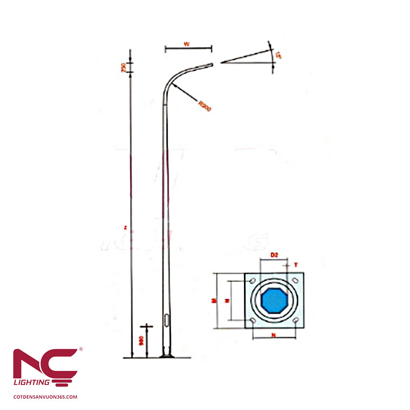 Cột đèn tròn côn hoặc bát giác được gia công tỉ mỉ từng quá trình từ cắt thép đến mạ kẽm. Toàn bộ cột đèn được hàn dọc tự động trong môi trường khí bảo vệ CO2, phù hợp với tiêu chuẩn.